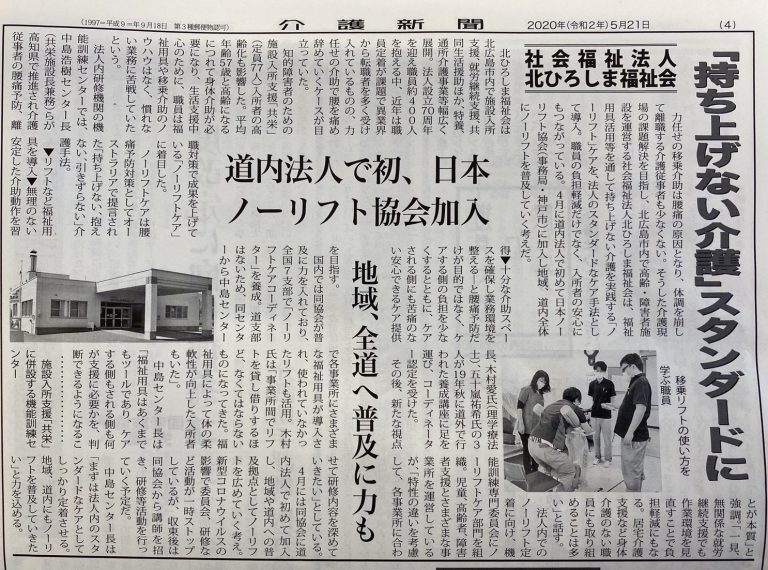 5月21日発刊「介護新聞」掲載のお知らせ 2020 5/21 ニュース 法人本部 2020年5月21日 5月21日(木)発刊の介護新聞に、当法人で取り組んでいる「ノーリフトケア」の実践について掲載されましたのでお知らせ致します。 掲載写真 ニュース 法人本部 ふれあいステーションほっと5月・6月号 6月の日替わり弁当メニュー表・注文表