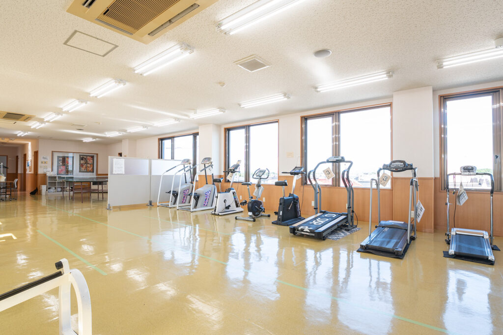 エアロバイクなどのトレーニングマシンがセットされています。健康維持、増進に効果が期待できます。