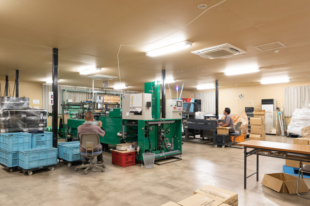 製袋機の操作やメンテナンスは職員が中心となって行っていますが、資材の開封や完成品の検品など、補助的な作業から利用者の方にも少しずつ挑戦していただいています。
