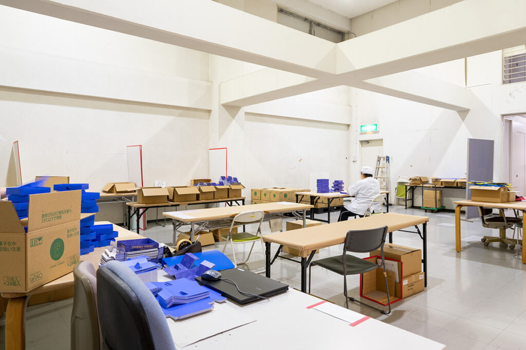 作業種としてはお菓子の化粧箱折りや袋たたみ等2~3種類の作業を納品日に合わせて展開しております。