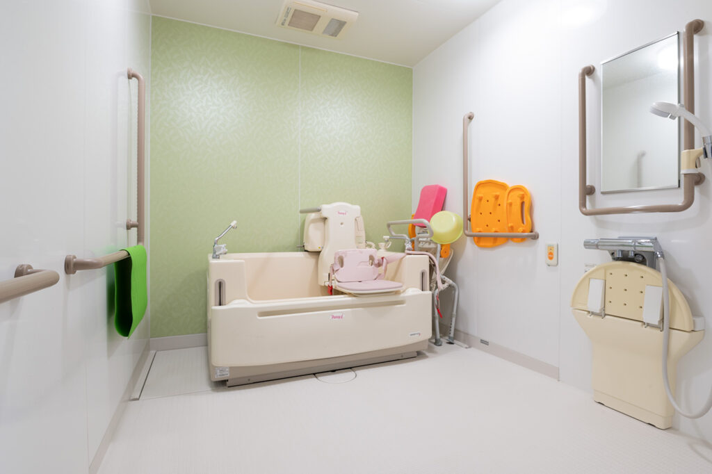 おひとりづつご利用いただけるお風呂です。足腰に不安を抱える方でも安心してご利用いただけます。
