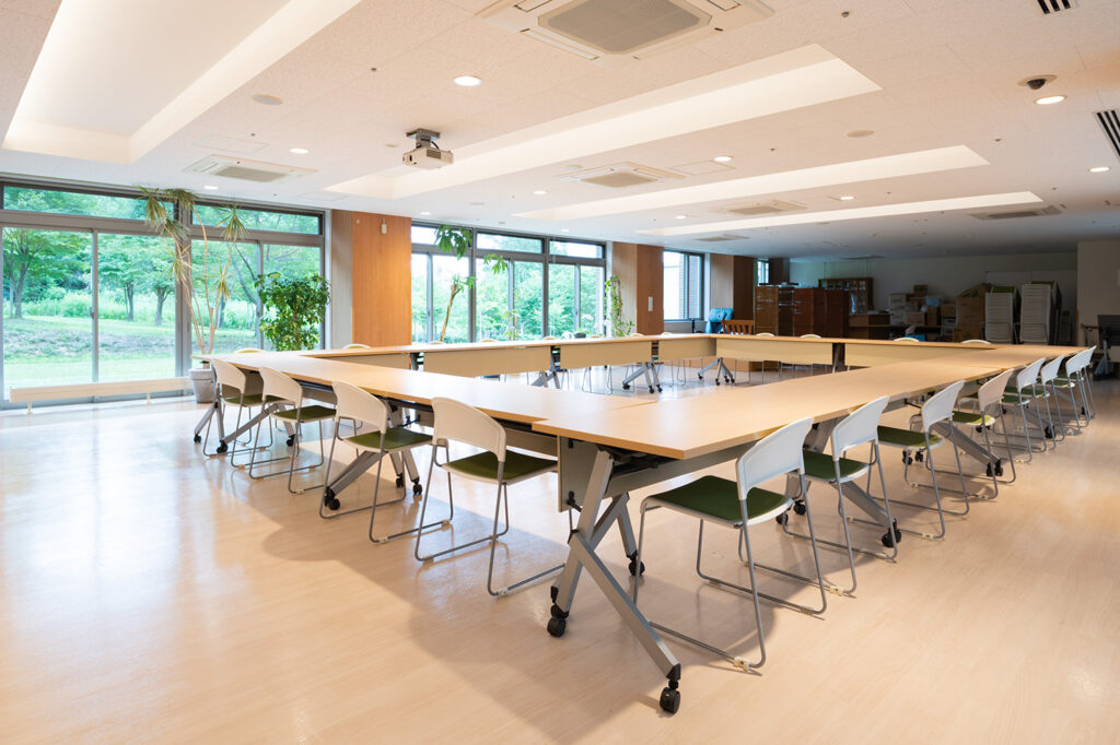 地域の方々に開放された多目的スペースです。プロジェクターやカラオケなどの各種設備も充実しており、多くの用途で活用いただけます。